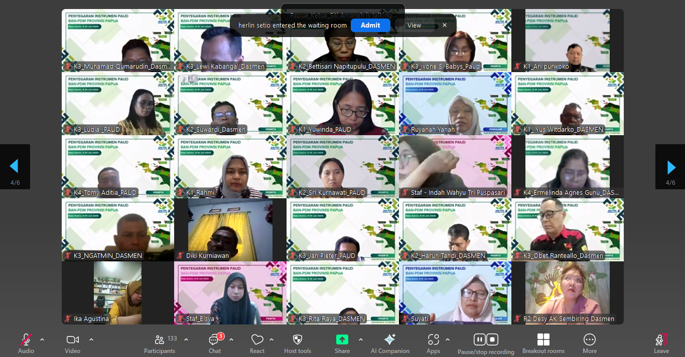 Dalam rangka persiapan pelaksanaan Akreditasi PAUD Tahun 2025 se-Papua, Badan Akreditasi Nasional Pendidikan Anak Usia Dini, Pendidikan Dasar, dan Pendidikan Menengah (BAN-PDM) Provinsi Papua menyelenggarakan Penyegaran Asesor Akreditasi PAUD